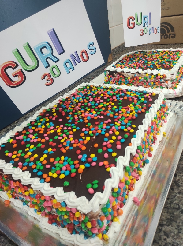 A programação também incluiu uma gincana interativa com brincadeiras musicais, como adivinhação de gêneros musicais por meio de dicas, e uma divertida caça ao tesouro com perguntas e respostas. Encerrando o momento festivo, os participantes cantaram parabéns para o Guri e se serviram do bolo comemorativo.
