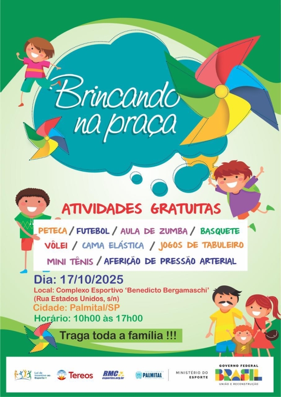 Palmital, 07 de outubro de 2025 – Nesta semana, a Tereos, em parceria com o projeto "Brincando na Praça", promoverá uma programação exclusiva de atividades esportivas e lúdicas na cidade de Palmital.