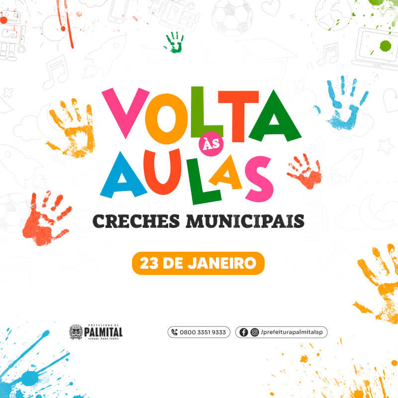 As creches municipais de Palmital estão se preparando para o início do ano letivo de 2025. Na próxima quinta-feira, 23 de janeiro, as crianças matriculadas nos Berçários I, Berçários II, Maternal I e II retornarão às atividades nas seguintes unidades: EMEI Ilse Franco, EMEI Cléa Razaboni, EMEI Clovis Barbosa, EMEI Anna Beatriz e Creche Tutti Mama.