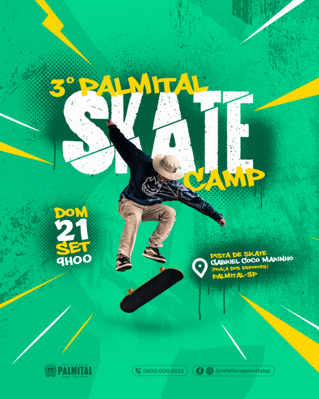 A pista de skate Gabriel Coco Marinho, na Praça de Esportes de Palmital, será palco de mais uma edição do Palmital Skate Camp. A competição acontece no sábado, 21 de setembro, a partir das 9 horaas da manhã, reunindo atletas de diferentes idades e categorias.O evento é organizado por atletas do skate da cidade e conta com o apoio do Departamento de Esportes da Prefeitura de Palmital. Estão confirmadas as disputas nas categorias Mirim, Iniciante, Feminino, Amador e Máster.Os primeiros colocados de cada categoria receberão troféus, e o campeão da categoria Amador levará também o prêmio em dinheiro de R$ 500. As inscrições acontecem no local, mediante a entrega de 1 quilo de alimento não perecível.O campeonato terá narração de Eduardo Schuete, de Assis, e contará com a avaliação dos jurados Filipe Batata (Ourinhos) e Higor da Pinta (Jacarezinho), nomes de destaque no cenário regional.O evento promete reunir competidores e público em uma manhã de esporte e cultura urbana, incentivando novos talentos e promovendo a integração entre atletas e comunidade.
