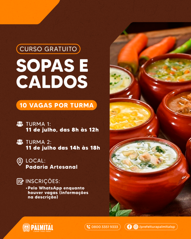 Aprenda a preparar sopas e caldos deliciosos e nutritivos! Uma ótima oportunidade para desenvolver habilidades culinárias e até garantir uma renda extra nos dias frios.