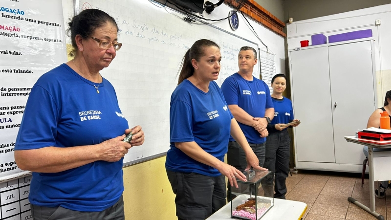 Outro ponto enfatizado foi a necessidade de procurar imediatamente atendimento médico em um posto de saúde em casos de picada de escorpião. Para tornar o momento mais didático, os agentes levaram exemplares do animal acondicionados em aquários, possibilitando que os alunos observassem de perto suas características e aprendessem sobre as partes do corpo responsáveis pela injeção do veneno.