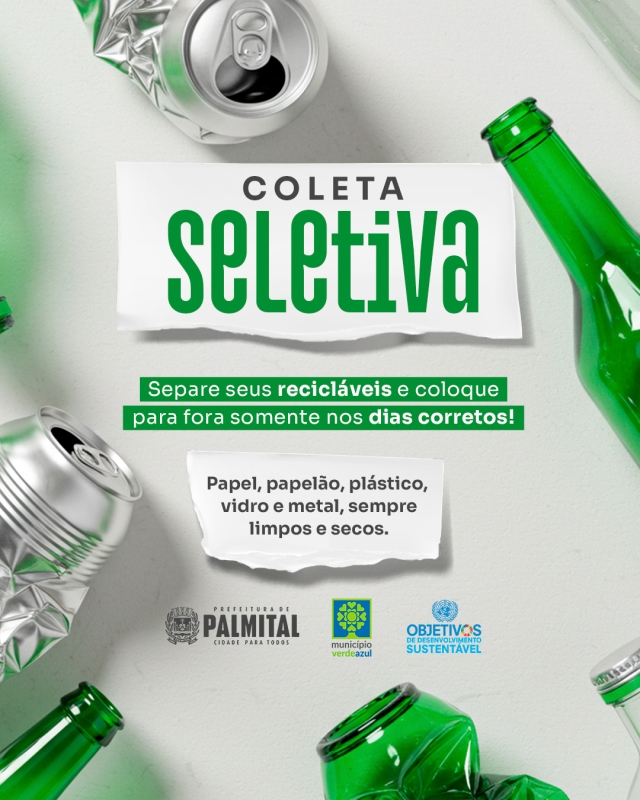 Separe papel, papelão, plástico, vidro e metal sempre limpos e secos e coloque para fora nos dias corretos.